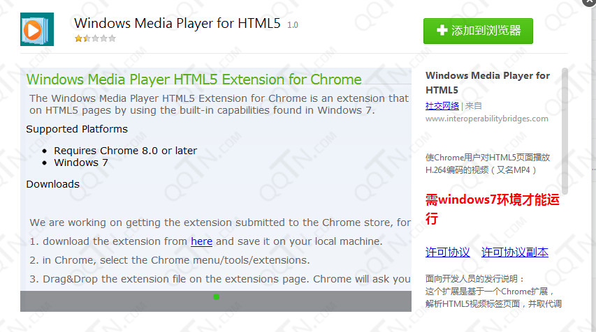 这个扩展是基于一个Chrome扩展,解析HTML5视频标签页面,并取代调用的Windows Media Player插件,这样可以在浏览器中播放的内容。如果在标签中指定的视频格式支持的Windows媒体播放器的功能扩展替换视频标签。包含其他视频格式的标签不会被触及。