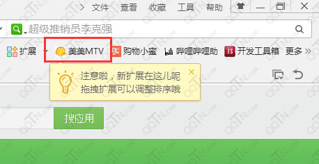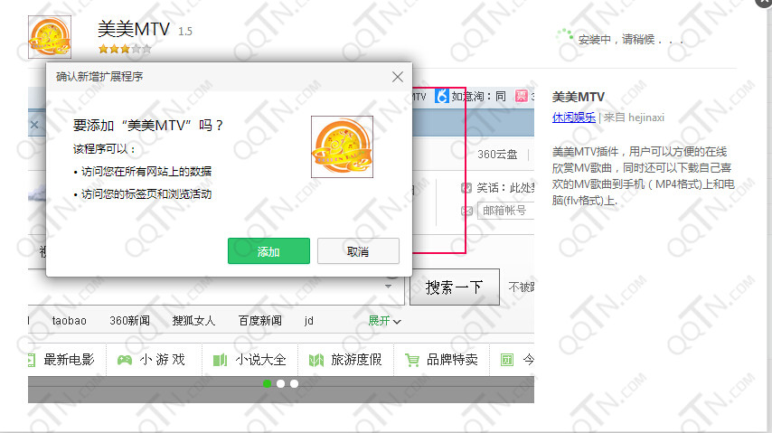 7、等待添加完成,添加成功之后,美美MTV插件就会出现在浏览器右上方扩展栏位置,可以点进去找到自己喜欢的MTV。