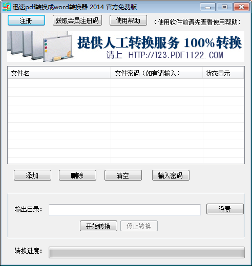 迅速PDF转换成Word转换器是一款完全免费的PDF转WORD转换器,本工具体积小巧、使用方便;不依赖于任何pdf和Word软件,独立完成pdf转Word操作。同时可以进行批量操作,在保证质量的前提下最快速度完成转换。