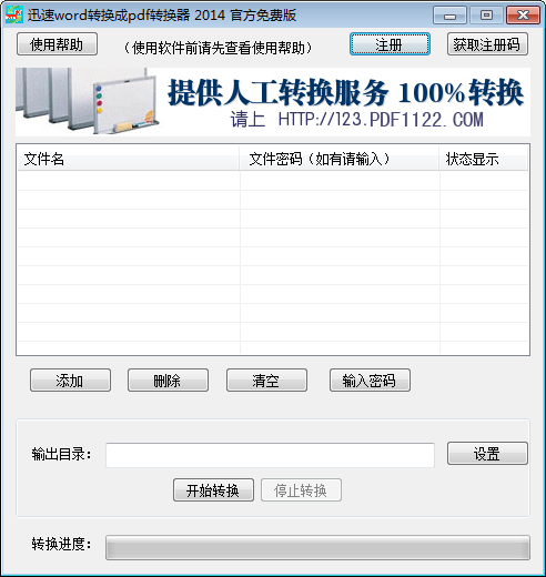 迅速WORD转换成PDF转换器是一款专业的WORD转换成PDF转换器格式转换软件,功能强大、操作简单,你只需把word文件添加到软件中,然后点“转换”即可完成转换。