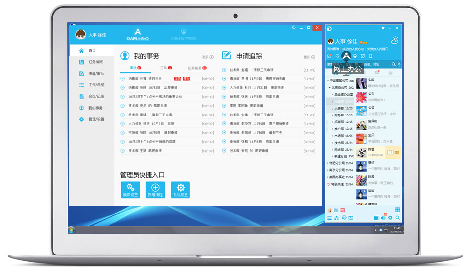 手机OA办公,申请审批,流程管理,任务指派,工作总结,会议记录等,一键操作,随时随地;