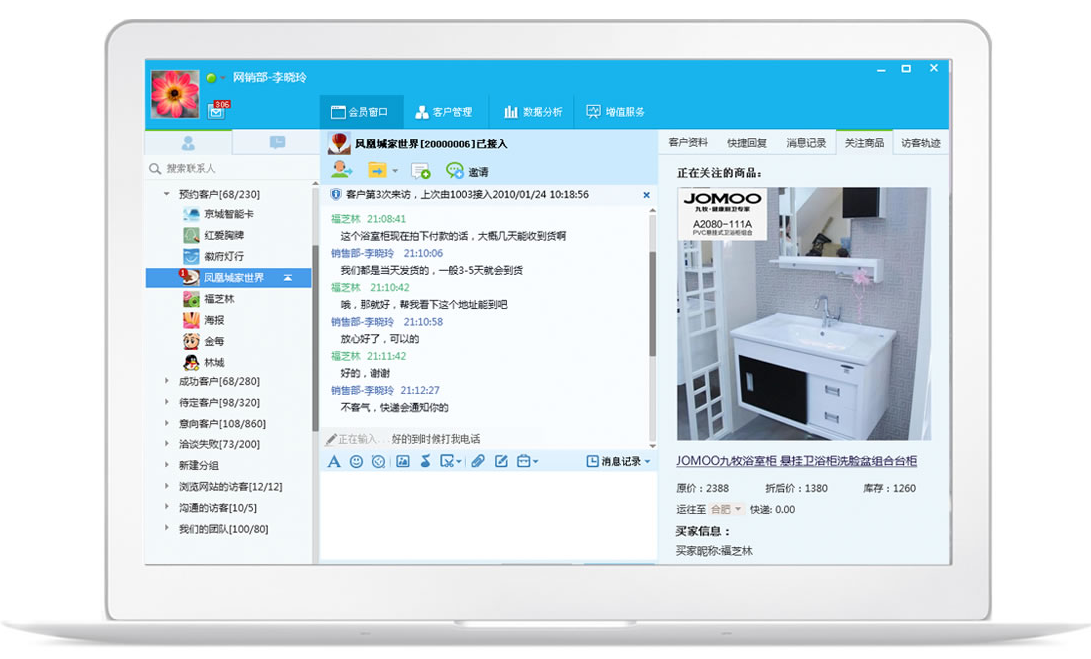 互联网时代强势来袭,ID在线客服完美整合PC网站和移动网站,尽享全网商机。实时呈现访客的来龙去脉,其状态一目了然,沟通更能有的放矢!ID网上客服集沟通、服务、统计、管理于一身,业绩提升不再是难事!