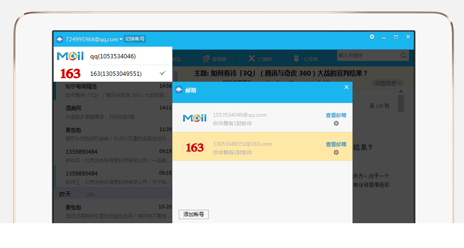 4、ID上现在有了更懂你的邮箱系统,多平台多账号接入