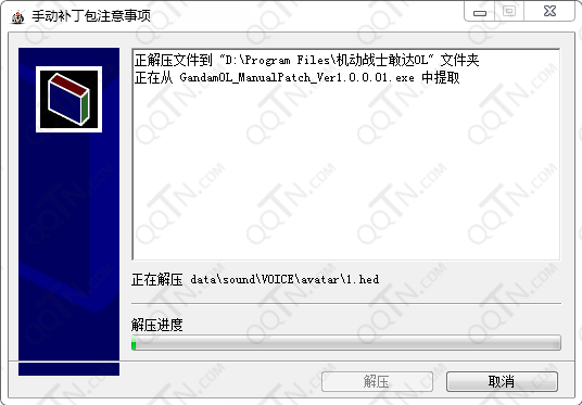 1.运行补丁,如“GandamOL_ManualPatch_Ver1.0.0.01.exe”