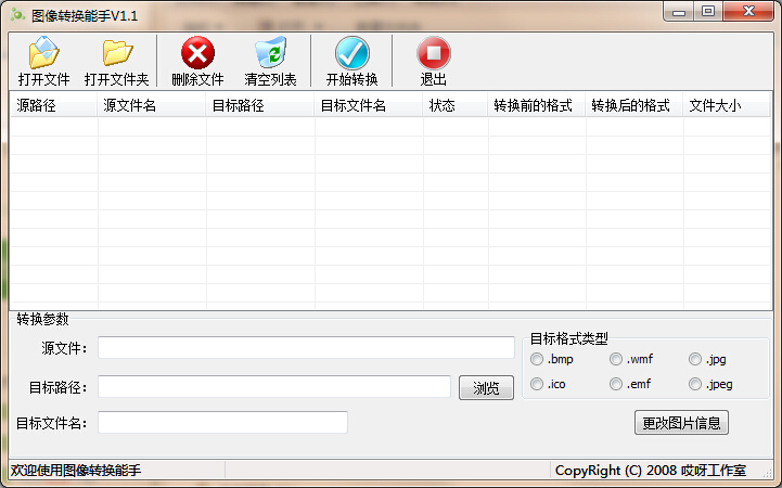图像转换能手是一款超级方便且使用的图像转换工具。功能很简单,就是转换图片格式,可快速批量转换包括ico,bmp,jpg,wmf,emf等在内的多种图片格式。