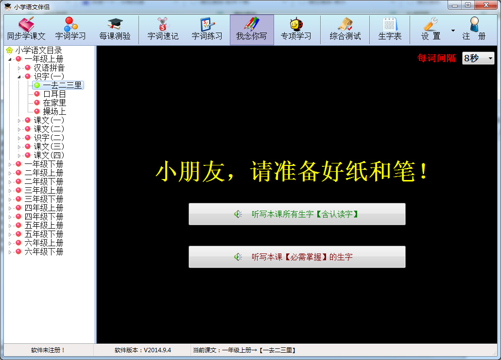 软件具体功能包括:同步学课文、字词速记、每课测验、综合测试、听音认字、看音认字、听音辨音、看字认音、我念你写、专项学习以及生字表!最新版中增加了手写功能,小朋友可以通过手写功能进行答题。