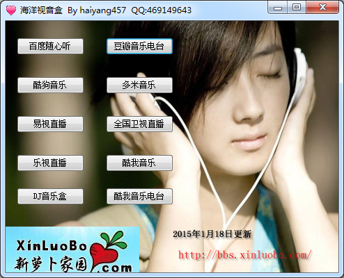 本软件是一款集百度随心听、豆瓣音乐电台、酷狗音乐、多米音乐、易视直播、乐视直播、酷我音乐、高音质DJ音乐盒、酷我音乐电台、最重要的是还可以观看湖南卫视高清直播于一体的免费软件。(为了让大家能够在网上观看湖南卫视特此制作本软件)