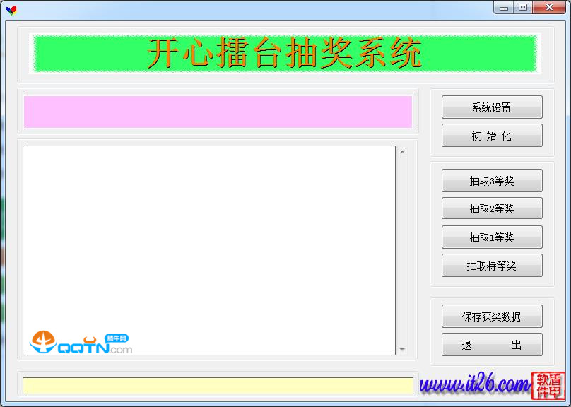 开心擂台抽奖系统是一款专门的随机抽奖软件,这款软件是某单位法律知识竞赛所编制,经作者改编成通用抽奖软件,这款软件完全免费,通过随机抽取人员名单来进行抽奖,以保证抽奖过程和抽奖结果的公平公正。