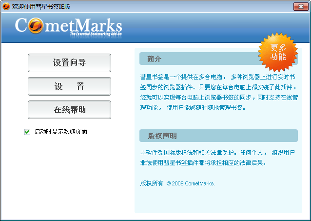 * 提示:推荐您启用让 CometMarks 在Windows启动时自动运行的选项。