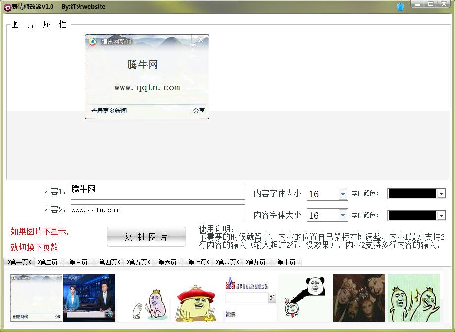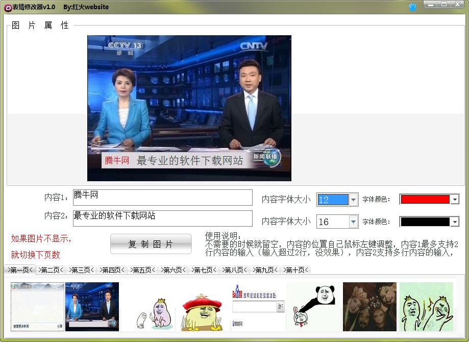 1、打开红火表情修改器,如果下方图片不显示,就切换一下页数:选择第二页,第三页之类的,然后再切换过来即可显示