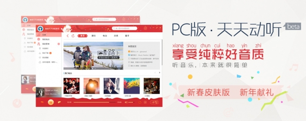 天天动听电脑版新年献礼,推出新春皮肤版!本版本界面红色更加喜庆,并在左上方有“羊”图像,象征在羊年享受纯粹好音质,让听音乐变得更简单!