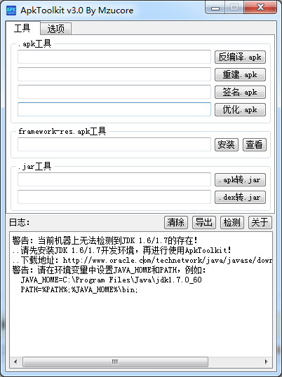 ApkToolkit是一款APK反编译工具,软件主要功能是对.apk文件进行反编译操作,根据反编译得到目录然后重建apk文件;同时还可以对于apk文件进行签名、优化。应用运行时,可以自动检测JDK6/7环境,强大的功能,可以算得上是一款APK反编译神器。