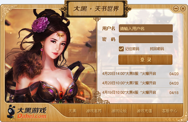 天书是一款三国题材的战争类网页游戏,本次推荐的天黑天书世界登录器,玩家可以通过本工具在桌面快速登录游戏,仅支持大黑游戏玩家。