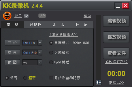 KK录像机针对不同的录制对象分为3种录制模式,开始录制前必须选择合适的录制模式。