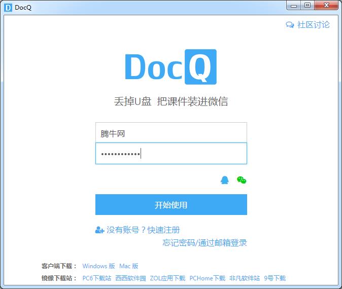 DocQ客户端是一个强大的在线文档编辑分享平台客户端,你可以通过DocQ上传文档,也可以在线编辑修改文档,DocQ支持将文档转换成链接,并分享到QQ或微信,支持加密分享,这样只有知道密码的人才能查看你分享的文档,非常方便安全!