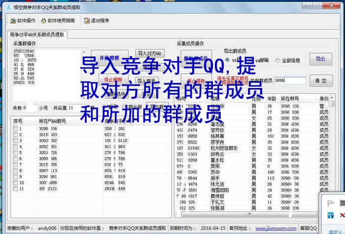 悟空竞争对手QQ群关系软件是一款专门抢竞争对手客户的软件,软件支持批量导入QQ号,批量提取对方的群和所加入群里的群成员,一天可收集同行业几百万数据,做网络营销需要的是精准数据库为前提,如没有数据库,那你营销谁,卖给谁,另外你今天卖了,过几天还可以接着卖,只要用户有需求!