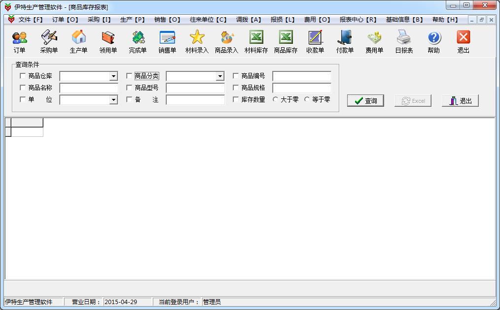 11、所有的查询,可以导出到EXCEL里;同时支持材料信息、商品信息、往来单位信息的EXCEL文件导入。