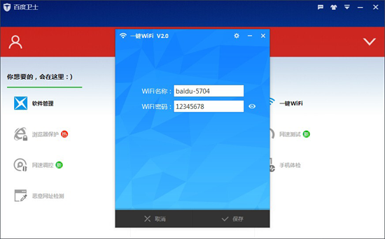 百度卫士一键WiFi工具可以帮助电脑用户一键共享网络,内置于百度卫士中。起初是在百度安全论坛中率先推出,广受用户好评,用户可下载百度卫士一键wifi专版使用该工具。