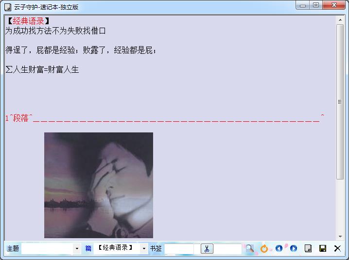 云子守护速记本是一款由云子守护官方推出的一款快速记事本软件,它能帮助你进行日常记事,自定义主题分类、书签、段落,支持多篇文章速记,还支持导出备份、全屏浏览、格式复制,另外它的主题还可以跟随光标移动而变化,非常方便好用,欢迎各位喜欢记笔记的朋友们下载使用!