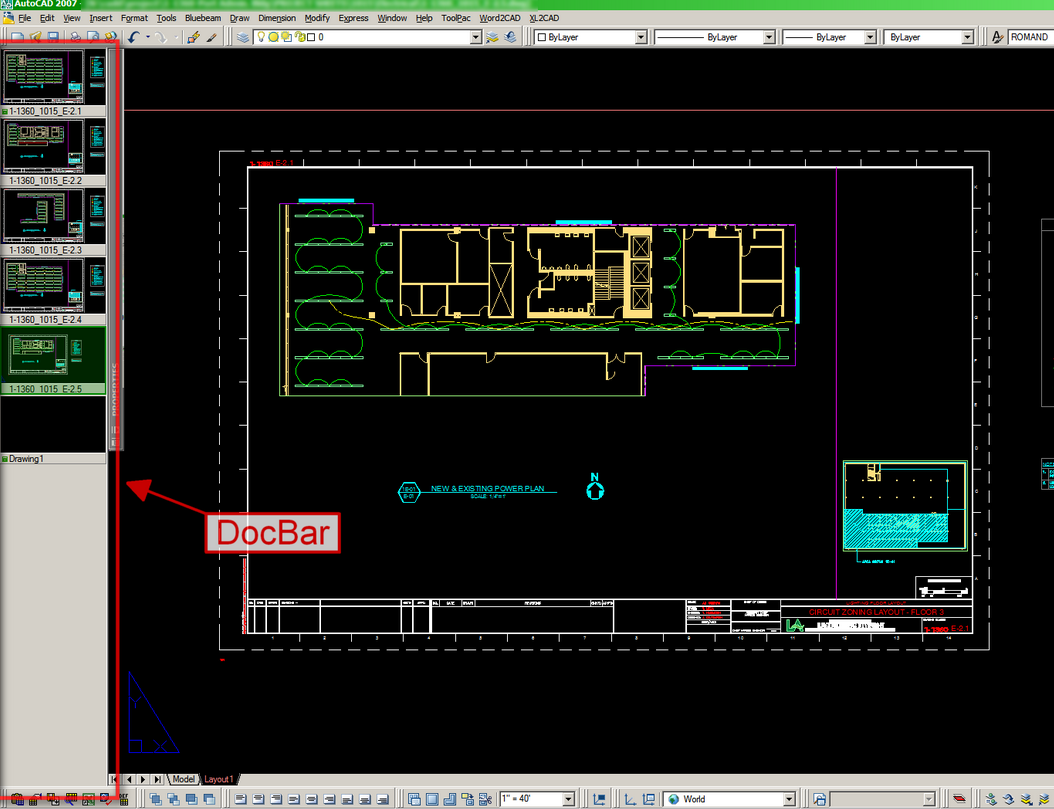 DocBa是一款cad图形快速预览管理工具,插件全面支持AutoCAD2000以上版本使用,当你在电脑上安装这款DocBar插件之后,可以快速以窗口列表的形式显示所有CAD图形,同时你可以进行快速浏览切换管理,让你在使用使用过程中更加方便高效。