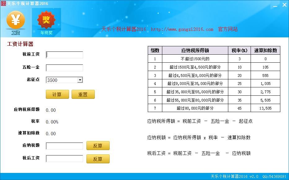 天乐个税计算器是一款专门帮助你计算个人所得税的工具,这款个税计算器绿色小巧、功能强大,它可以进行税前工资计算与税后工资计算,清楚地给出工资扣税过程中的各个参数,以及工资扣税的详细计算过程,并能为你计算年终奖个人所得税,方便用户对自己的纳税情况了解。
