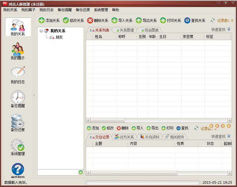 鸿言人脉管理软件是一套专门用来帮助你管理人际关系及交际圈子的软件,这款软件可以帮你方便快捷的管理你的人脉信息。它比普通的通讯录功能强大,不但可以管理联系人,还可以管理你所有的人际圈子,同时可以设置备忘提醒,帮助你安排日常事务。对于每个联系人或圈子,可以灵活设置关系或属性,以及亲密度或参与度等等。可以对每个联系人的生日进行实时提醒,以便第一时间对该关系人进行相关交际。除此之外,本软件通过子栏目对各种需要的资料进行分类添加,如:交往记录、对方的人际关系、圈子的活动记录等等,还可以对每个关系人或圈子添加照片、文档等附件,扩充人际交往的资料信息。