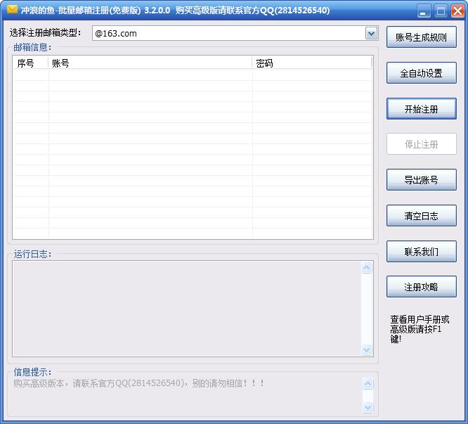 冲浪的鱼批量邮箱注册分为:普通版,高级版。