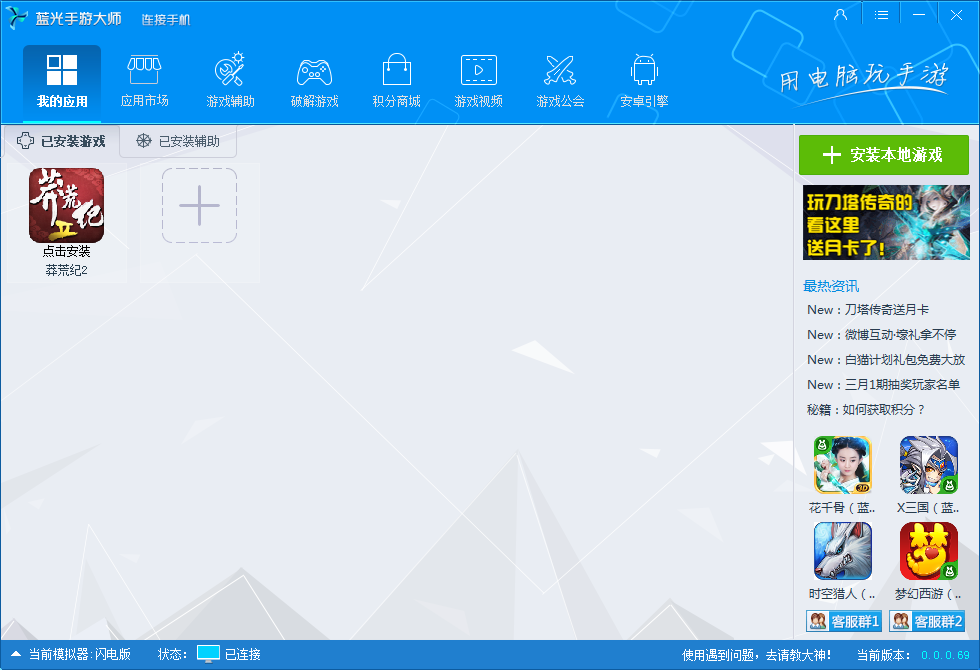 4、软件会打开蓝光手游大师,并且自动下载《莽荒纪2手游电脑版》游戏。