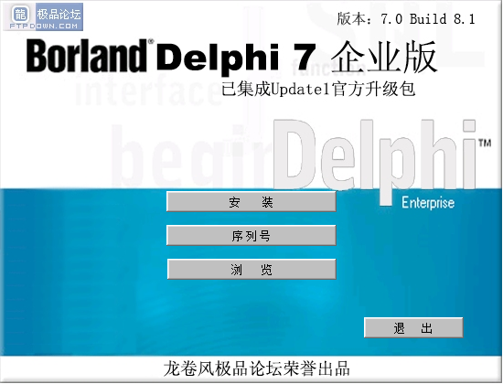 Delphi是一个类似微软公司开发的VB的一个Windows应用程序开发环境,腾牛网特此为大家献上7.0 build 8.1这个经典的版本,它强大的数据库开发功能、简单的窗口界面设计一直得到程序员的青睐。