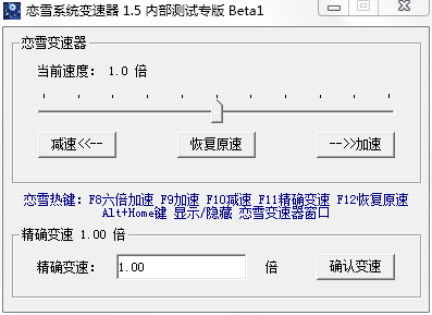 恋雪热键:F8六倍加速 F9加速 F10减速 F11精确变速 F12恢复原速