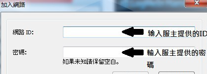 填入之前第五步设定的ID与密码便能加入该局域网,在游戏中输入系统分配的虚拟IP,享受与同伴联机游戏的乐趣。
