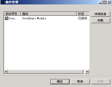 插件安装非常简单,到此已经安装了应用程序插件,由于插件是在RTX启动时加载,所以您需重新登陆RTX才能使用该插件。登陆后点击“操作”à“插件管理”,打开插件管理界面,此时应用程序插件状态显示为“启动”,表示该插件可以正常使用了。如图1.3所示。
