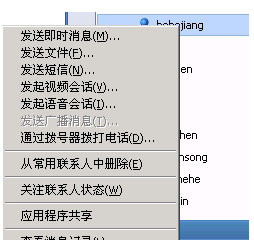 右击RTX面版某位同事,在下拉菜单选择“应用程序共享”。如图1.4所示。