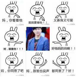 将兔斯基版本的表情包下载后,召集九张神龙,让你的照片放在正中间,兔斯基的手指向你就可以了,效果如如下: