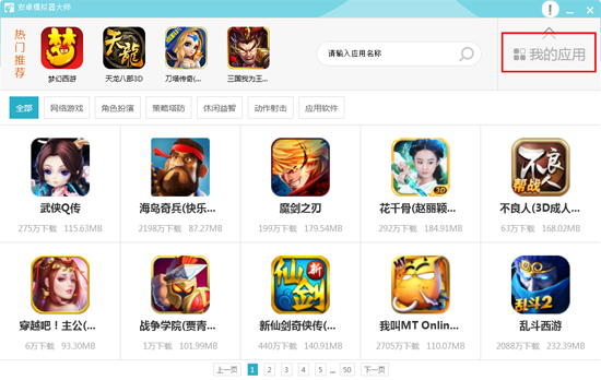 进入安卓模拟器大全,后点右上方的“我的应用”按钮