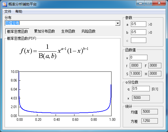 概率分析辅助平台是一款小巧的概率分析辅助软件,拥有计算和绘制概率密度函数、生存函数和风险函数、累加分布函数、计算分位数均值和方差等功能。