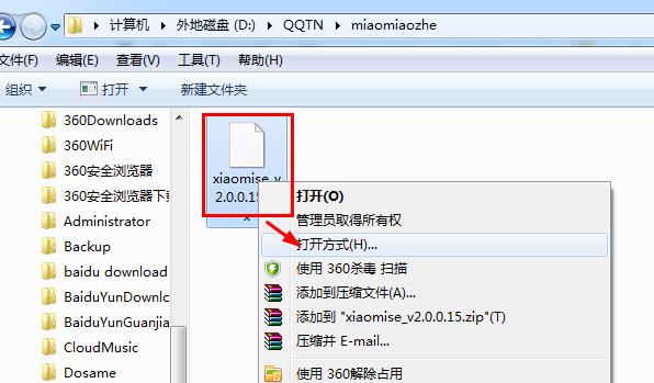 1、解压文件,鼠标右键点击【xiaomise_v2.0.0.15.crx】,选择【打开方式】;