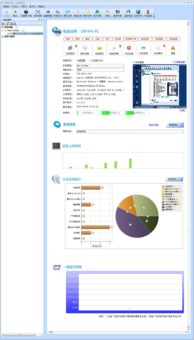 18. 上网评价功能,能自动分析客户不良上网行为,即时通知被控电脑,提醒电脑使用者注意上网规范 。
