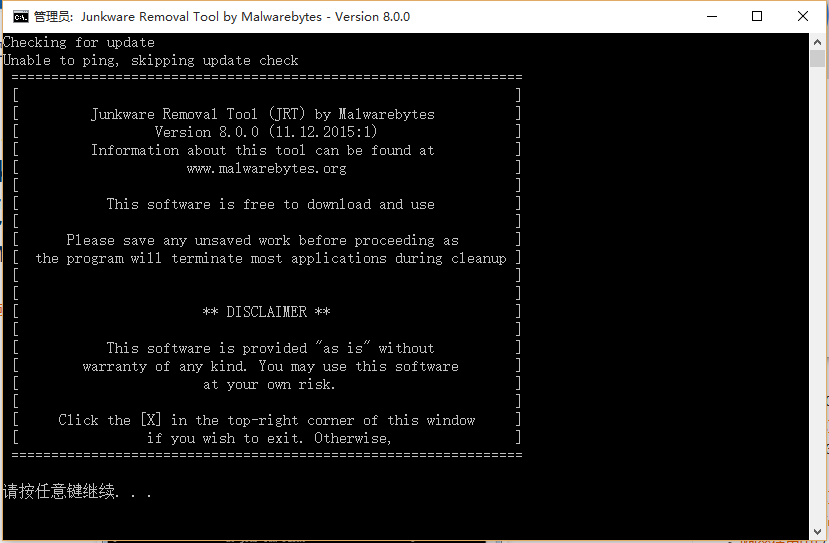 Junkware Removal Tool 提供了一个相当简单易用的操作界面,执行后只需按一下键盘上的「Enter」键