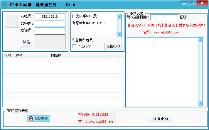 E卡QQ群一键装逼签到工具提供了过滤重复签到、自定义签到词等功能,如果懒得签到就试试它吧,一键批量在所有群留下你的足迹。