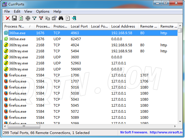 它还提供诸如本地和远程IP地址,本地端口名称,突出显示的状态变化等等。