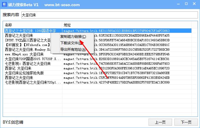 E剑忠晴磁力搜索工具是一款绿色简单、免费好用的BT种子搜索神器,这款软件可以帮助你搜索全网的视频资源,想看什么电影视频,你只需要在搜索框内输入演员、片名、导演即可迅速搜索到你想要的视频资源,软件绿色无广告,欢迎免费下载使用!