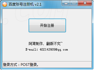 运行“21cn邮箱注册百度账号工具.exe”即可开始注册百度账号。