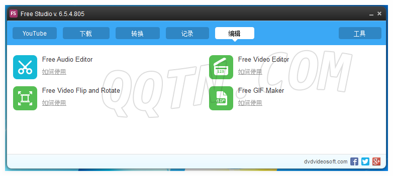 Free Studio媒体工具大集合 是软件厂商 DVDVideoSoft 出品的全部软件的一个集合。里边有多种类别的使用软件。最为重要的是,他是免费的。你现在就可以拥有它。