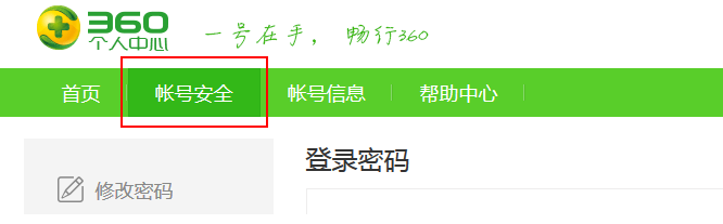 1、使用要解绑手机号的帐号,登录360个人中心,点击顶部的“帐号安全”
