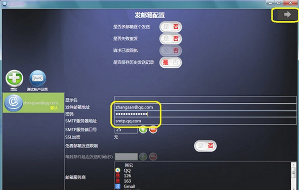 【发件邮箱地址】【SMTP服务器地址】必须填写