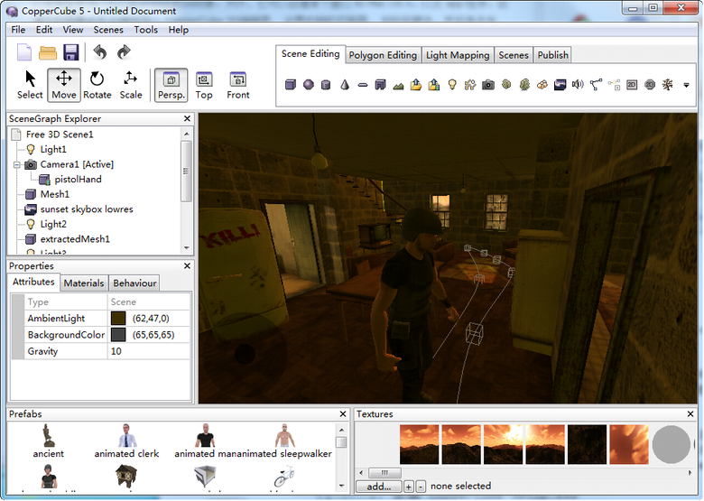该CopperCube编辑器有一个内置的lightmapper它可以提高您的3D场景的appearence很大。