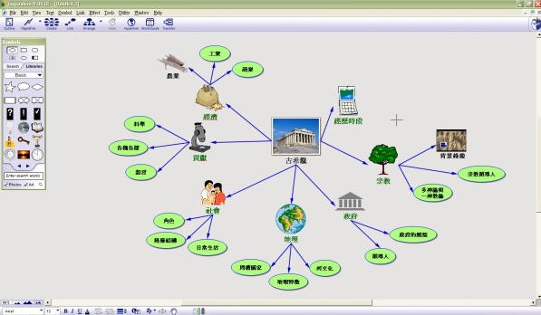 (2)如果制作者感到这些图不能满足要求的时候,还可以通过“复制——粘贴”的操作将外部的图形导入inspiration作为概念的框图符号。)