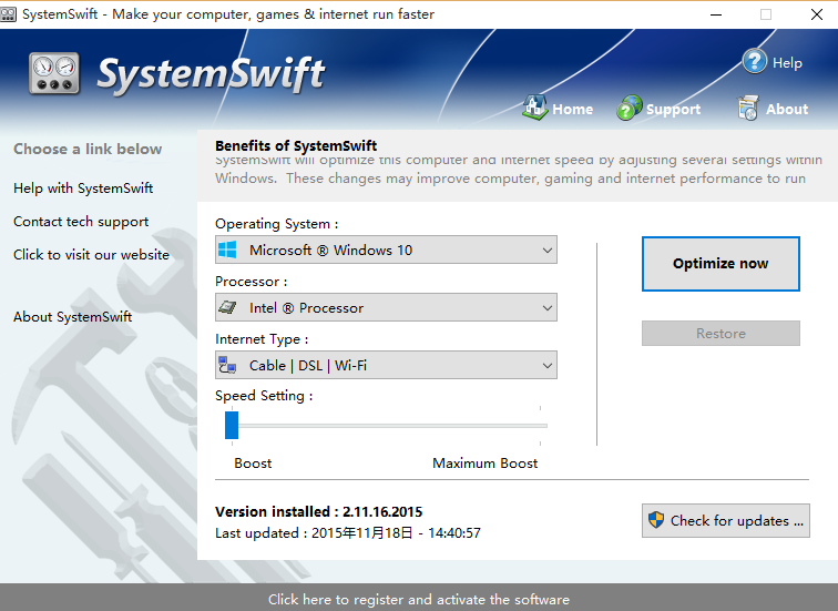 SystemSwift快速扫描计算机中的常见问题,并修复它们,然后让几个永久更改Windows以你的电脑感觉它是全新的一次。不处理一个缓慢的电脑,使任务需要较长时间才能完成,安装SystemSwift,使您的电脑运行速度更快。