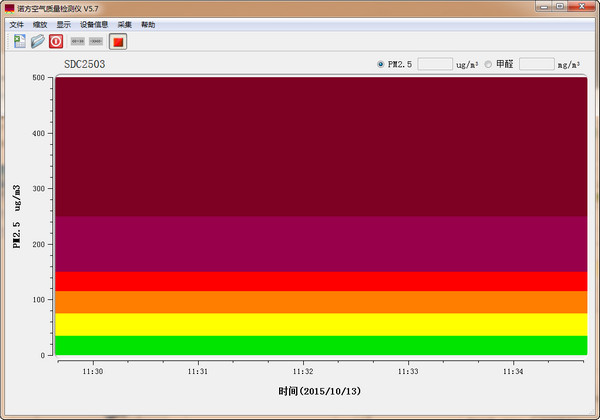 诺方空气质量检测仪帮你通过电脑连接诺方型号为SDC2501相关的PM2.5检测仪或SDC2503、SDL301和SDM801相关的空气质量检测仪,用以显示PM2.5和甲醛的值,并为你绘制动态曲线。